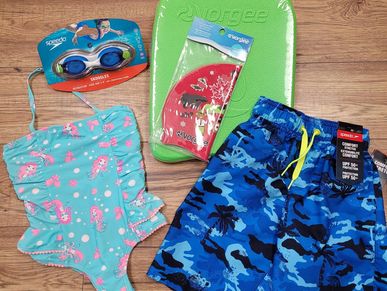 * Swim caps, goggles, antifog spray, ear & nose plugs